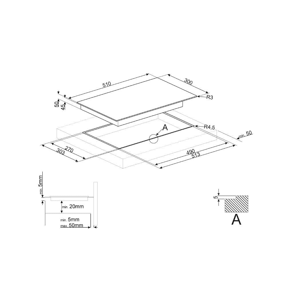 Kích thước sản phẩm : Rộng 300 x S510 x C50