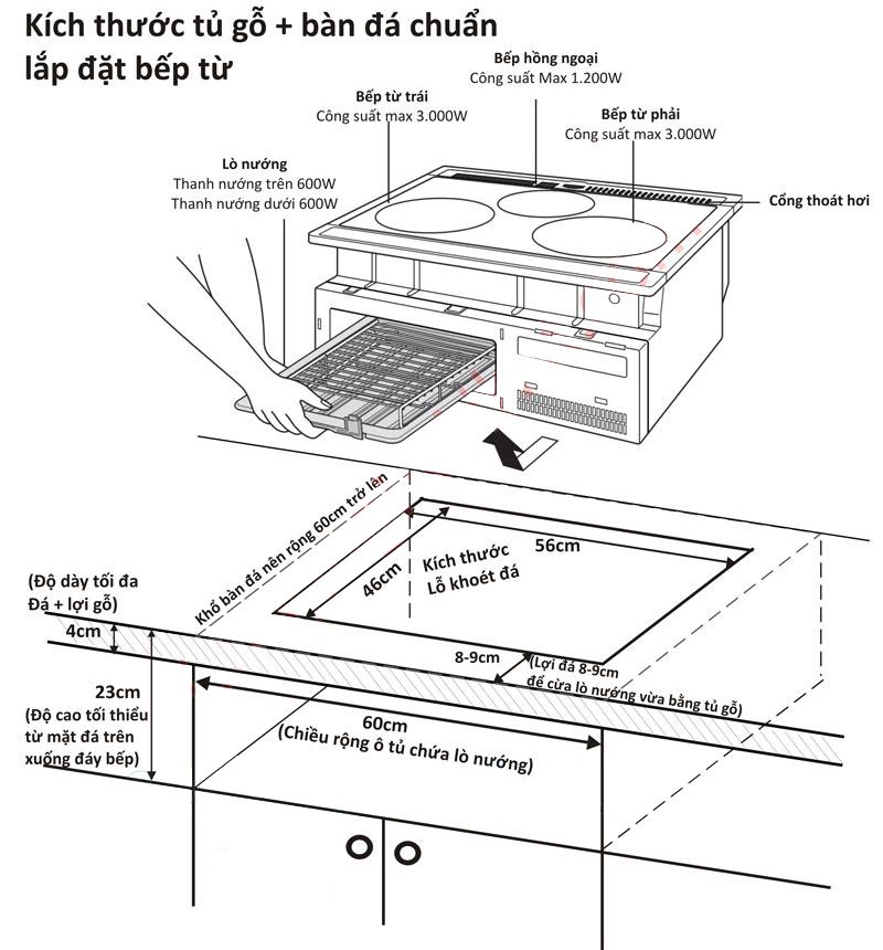 Cấu tạo 2 bếp từ + 1 lò nướng + 1 bếp hồng ngoại
