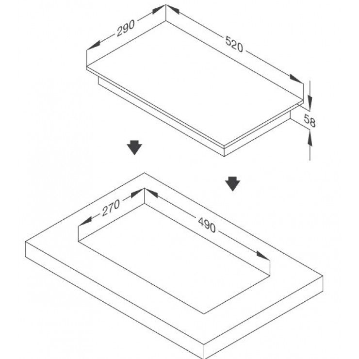 Kích thước bếp: W290 x D520 x H58mm