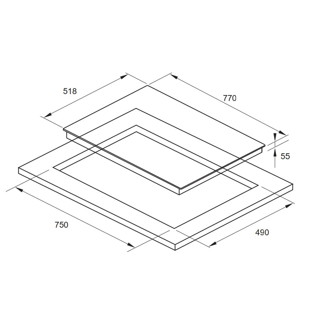 Kích thước bếp :770R x 518S x 55C( mm)