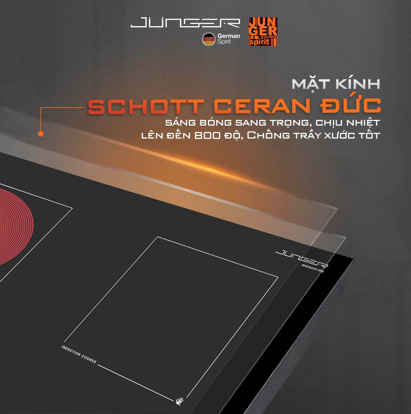Nổi bật so với các sản phẩm cùng loại trên thị trường, Junger MTD-18 được trang bị mặt kính cao cấp Schott Ceran của Đức với vô vàn ưu điểm vượt trội: