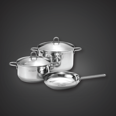 Bộ nồi inox Junger CWJ-050 cao cấp sở hữu 5 chi tiết, bao gồm 3 sản phẩm đun nấu: 2 nồi nấu, 1 chảo cùng 2 nắp kính đi kèm. Mỗi loại nồi được thiết kế với kích thước khác nhau, đáp ứng tối đa nhu cầu chế biến đa dạng món ăn của người dùng.