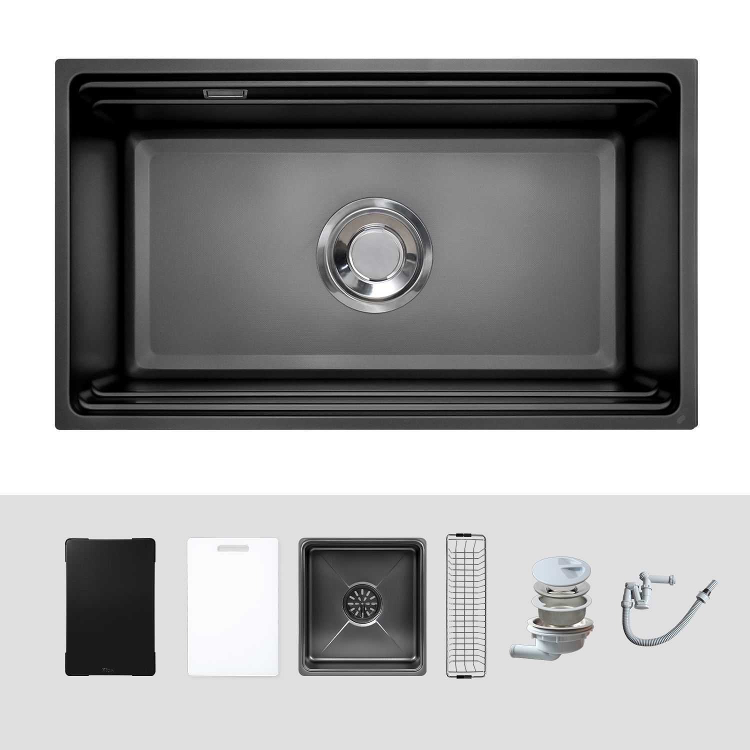 Bộ sản phẩm bao gồm: 01 chậu rửa + 01 bát rác + 01 Siphon + 01 giỏ inox + 01 thớt inox có lỗ + 01 thớt nhựa + 01 chậu nhỏ.