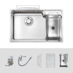 Lưu ý: Bộ sản phẩm bao gồm 01 chậu rửa + 01 bát rác + 01 Siphon + 02 giỏ inox + 01 chậu rửa nhỏ