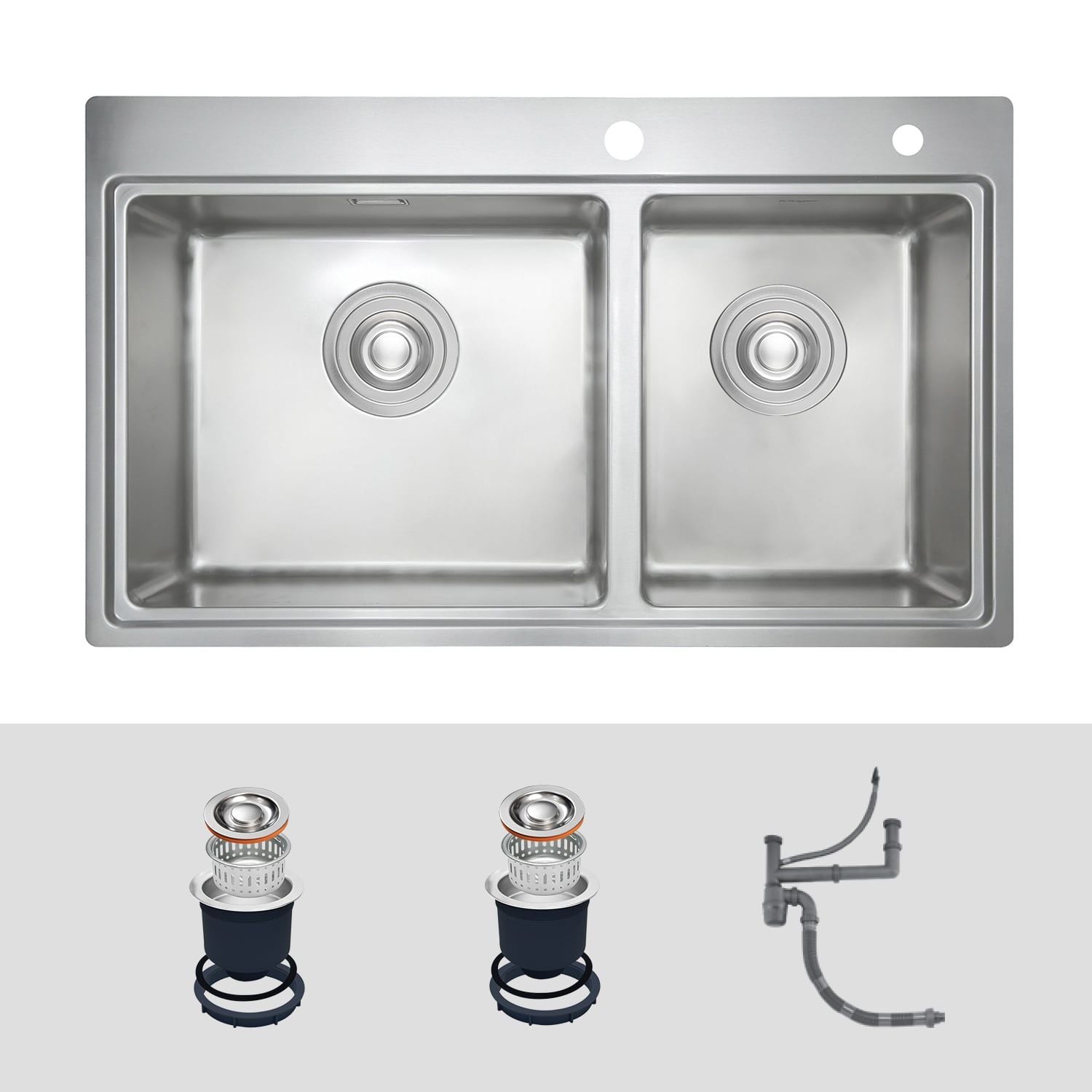 Bộ sản phẩm bao gồm: 01 chậu rửa + 02 bát rác + 01 Siphon.