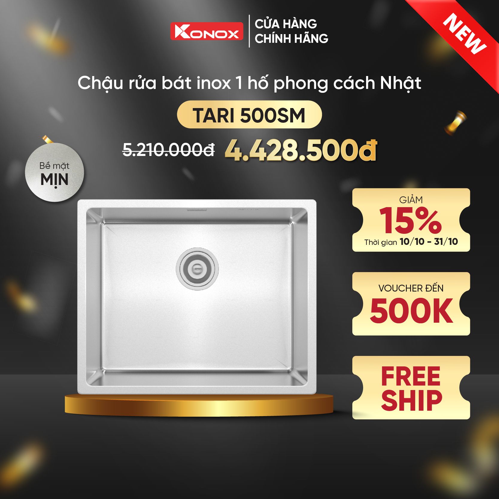 Với model Tari 500SM, Konox ra mắt công nghệ xử lý bề mặt trơn mịn sở hữu độ bền, khả năng chống ăn mòn lý tưởng, an toàn với sức khỏe và 100% có thể tái chế, giữ vững độ bền và thẩm mỹ theo thời gian. Tari 500SM với thiết kế vuông góc tinh tế sắc bén tạo điểm nhấn cho không gian bếp.