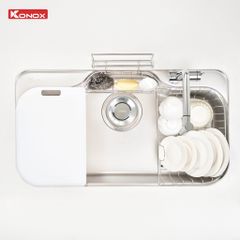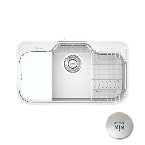 - Tích hợp phụ kiện thông minh: Thớt nhựa, rổ phụ, giá úp bát, siphon.