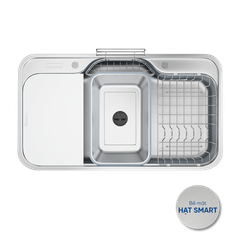- Tích hợp phụ kiện đáp ứng đủ tiêu chí sử dụng hàng ngày của người nội trợ: thớt nhựa, colander, giá úp bát và rổ phụ gắn thành chậu.