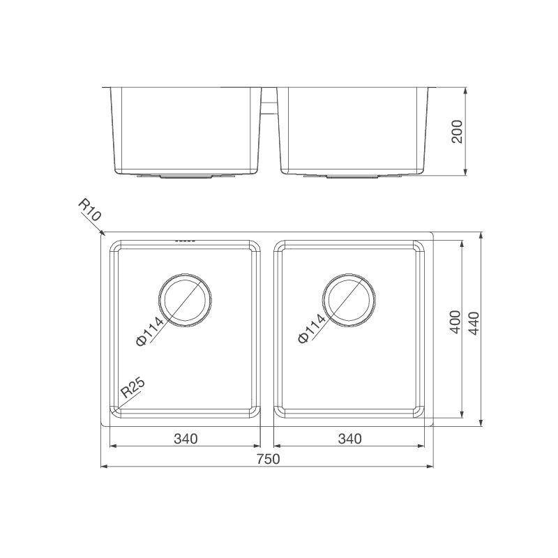 Độ sâu bồn: 200 mm