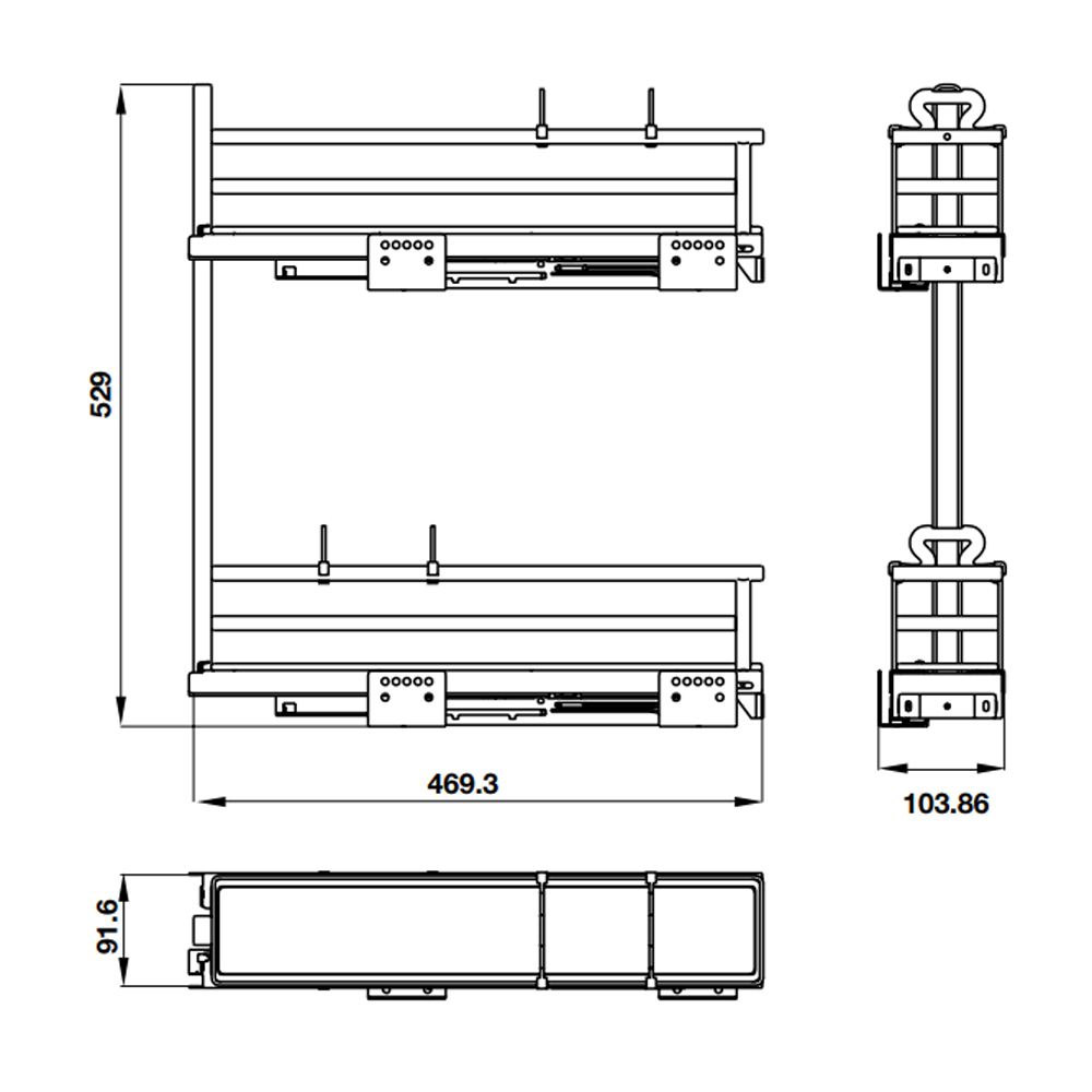 + Ray trượt giảm chấn lắp gài với rổ lắp bên