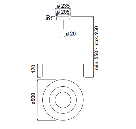 Kích thước (DxRxC): Φ500x170 (550/950) mm