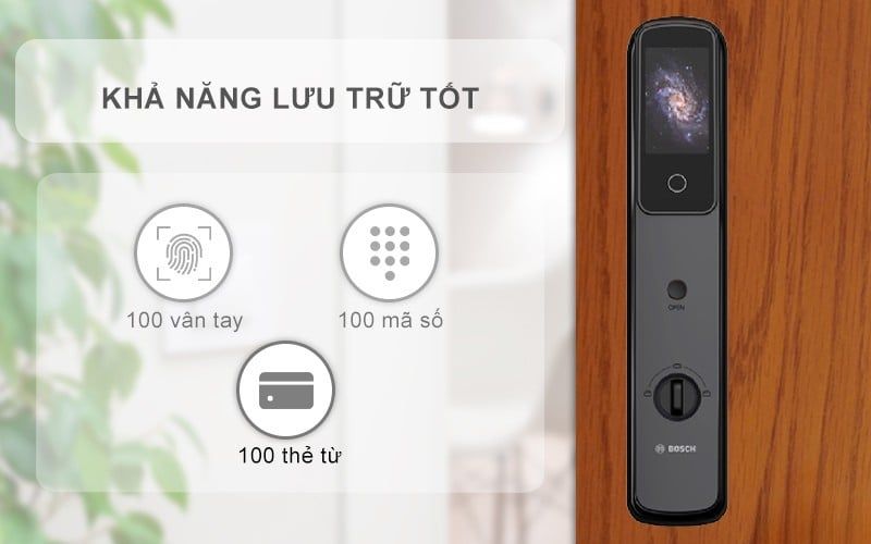 - Mã số thông minh: Lưu trữ 100 mật mã, tích hợp tính năng mật khẩu ảo để tránh bị nhìn trộm.