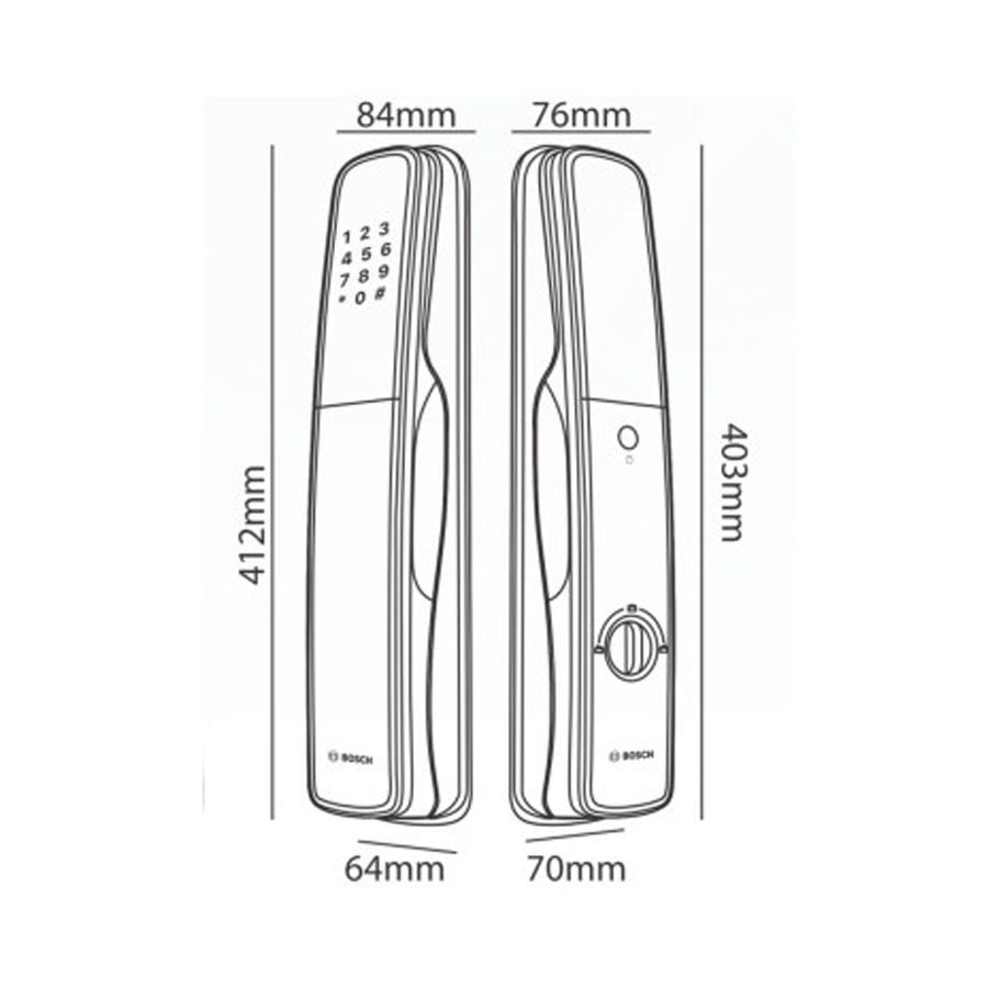 - Khóa điện tử Bosch với tay cầm cố định tiện lợi, giúp việc mở khóa trở lên đơn giản và tiện lợi, đường nét tinh tế mà vẫn sang trọng với vẻ ngoài sáng bóng.