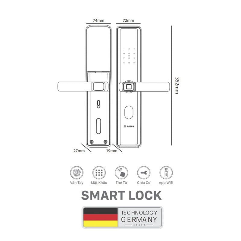 Mặt khóa ngoài: Hợp kim nhôm, IML