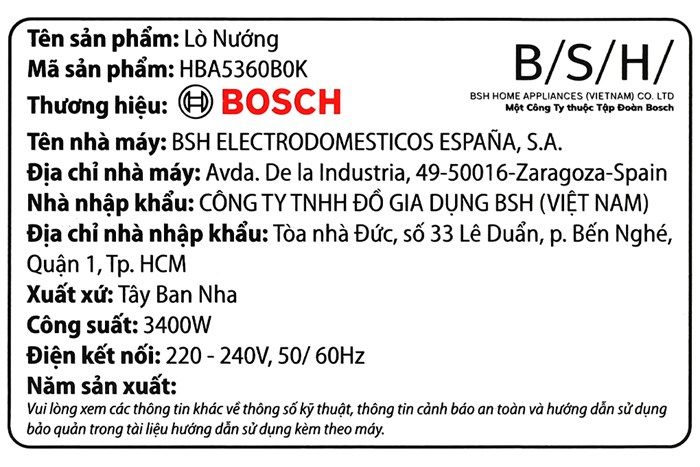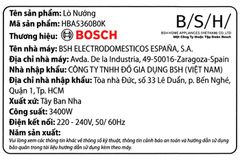 Thông số kỹ thuật chi tiết LÒ NƯỚNG ÂM TỦ BOSCH HBA5360B0K SERIE 6 71L