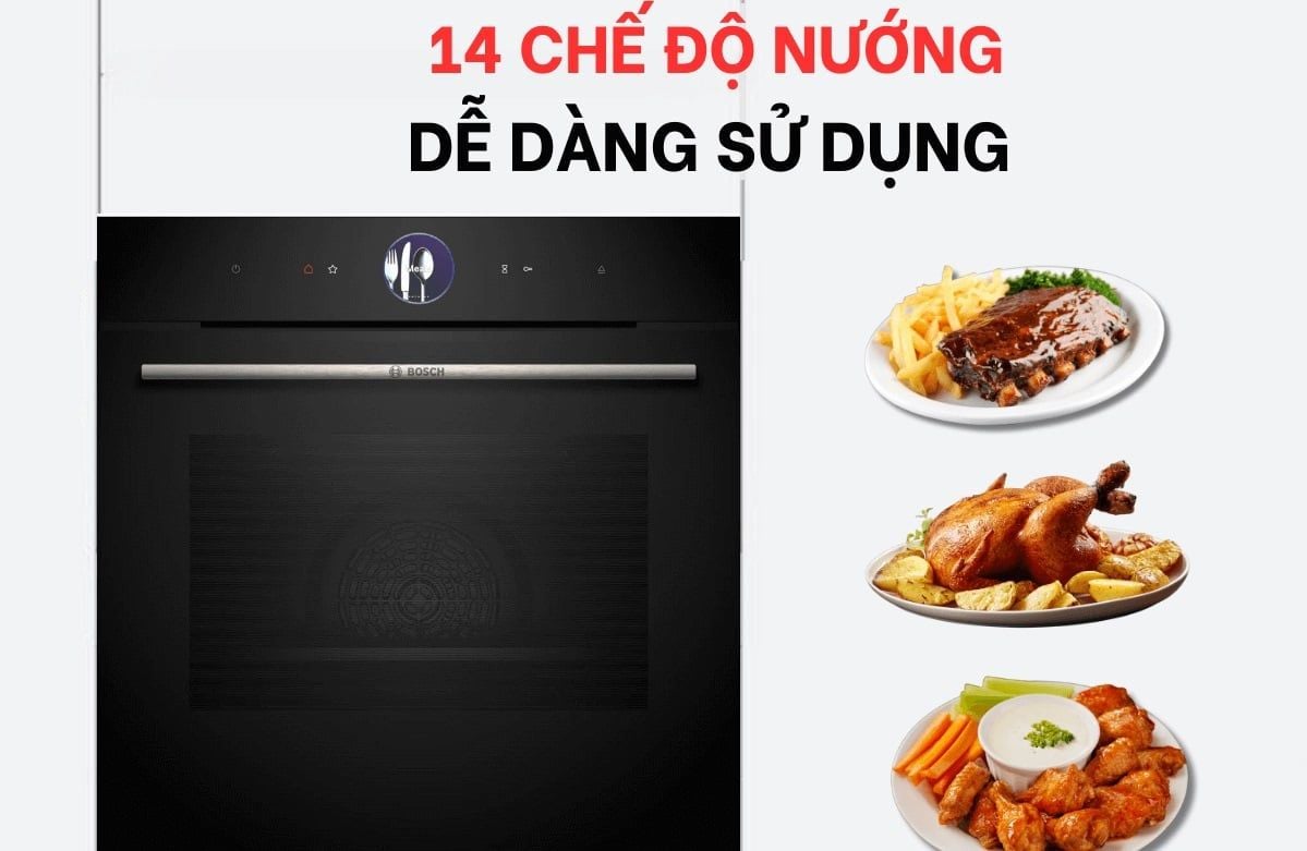 Lò nướng Bosch HBG7341B1 mang đến sự tiện lợi tối đa với chương trình nấu ăn được cài đặt sẵn, hỗ trợ bạn chế biến đa dạng các món ngon một cách dễ dàng. Từ bánh ngọt, pizza, thịt quay đến các món rau củ hầm, thiết bị tự động điều chỉnh chế độ nhiệt, thời gian và phương pháp nấu phù hợp, đảm bảo kết quả hoàn hảo. Đặc biệt, màn hình hiển thị rõ ràng kèm hướng dẫn chi tiết giúp bạn lựa chọn nhanh chóng và chính xác. Với tính năng này, bạn không chỉ tiết kiệm thời gian mà còn mang đến cho gia đình những bữa ăn chuẩn vị như đầu bếp chuyên nghiệp.