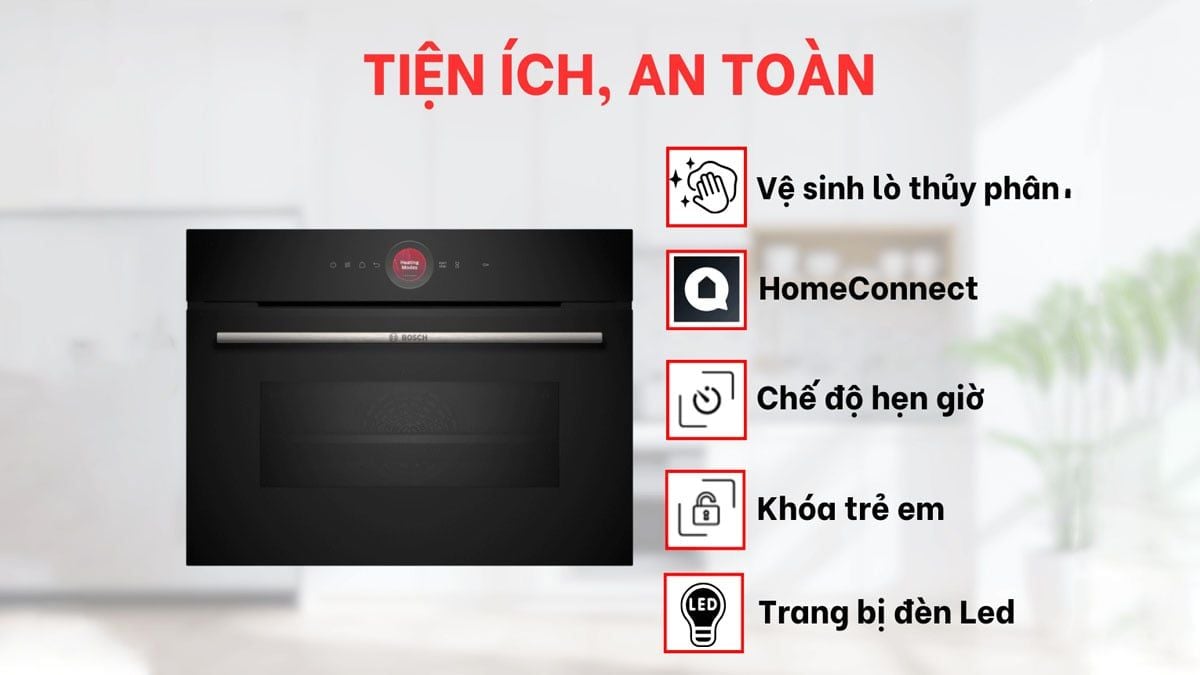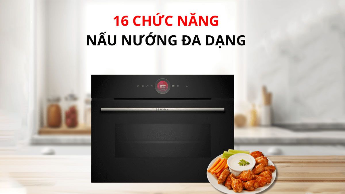 Thông số kỹ thuật chi tiết LÒ NƯỚNG KÈM VI SÓNG ÂM TỦ BOSCH CMG7241B1 LÀM SẠCH THỦY PHÂN MÀU ĐEN