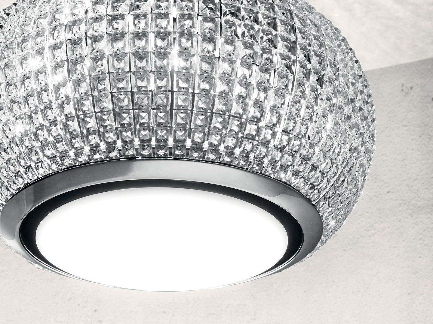 Không gian đầy hình sao, tạo nên bầu không khí huyền diệu, Với lăng kính Pha lê trắng phản chiếu ánh sáng và màu sắc. Một thiết kế tinh tế và cân bằng nhờ sự kết hợp giữa Pha lê với đèn LED. Ban ngày nó phải chiếu ánh sáng tự nhiên, ban đêm nó toả sáng với các hiệu ứng đặc biệt.