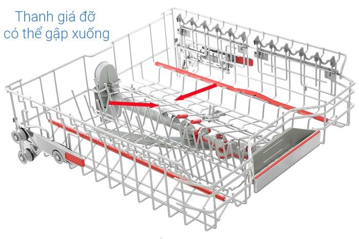 - Bánh xe con lăn ở khay trên cùng và khay dưới cùng