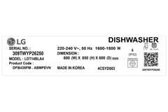 Thông số kỹ thuật Máy rửa chén độc lập LG LDT14BLA4