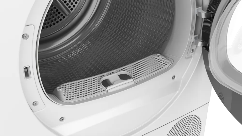 - Tích hợp Self Cleaning Condenser, bộ trao đổi nhiệt tự làm sạch, duy trì hiệu suất, tiết kiệm điện và loại bỏ xơ vải hiệu quả.