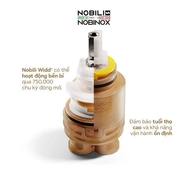 Toàn bộ linh phụ kiện của vòi rửa bát Nobili BLUES NB177 đều được nhập khẩu trực tiếp từ Ý, đảm bảo tiêu chuẩn chất lượng châu Âu nghiêm ngặt. Từ lõi trộn nước đến đầu vòi, từng chi tiết đều được gia công chính xác, bền bỉ theo thời gian, mang đến trải nghiệm sử dụng mượt mà, an toàn và đậm chất Ý trong từng thao tác.