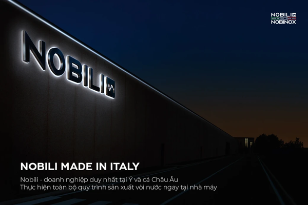 Nobili là doanh nghiệp duy nhất tại Ý và cả Châu Âu thực hiện toàn bộ quy trình sản xuất vòi nước ngay tại nhà máy của mình, không thuê ngoài dù là khâu nhỏ nhất. Nghĩa là Nobili tự thiết kế từng đường nét trên vòi nước, tự đúc đồng nguyên chất, nấu chảy và đúc khuôn, tự tiện từng chi tiết máy móc một cách tỉ mỉ, tự đánh bóng và mạ crôm để mang lại độ sáng bóng hoàn hảo, tự xử lý PVD để phủ màu hoàn thiện bền vững theo thời gian, và thậm chí tự gia công laser cho những họa tiết tinh xảo trên bề mặt sản phẩm.