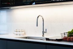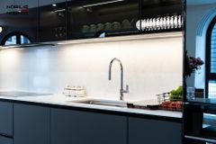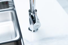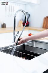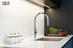- Tay vòi ngang di chuyển mượt mà, linh hoạt, tối ưu không gian bàn bếp.
