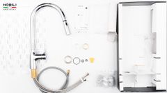 - Vòi bếp dây rút nóng lạnh xoay 180 độ cho phạm vi tiếp cận lớn, linh hoạt sử dụng trong thao tác bếp.