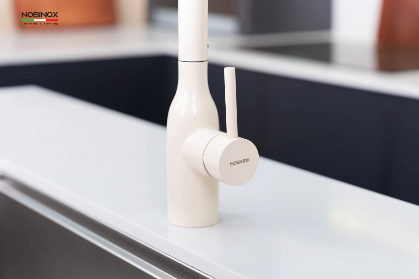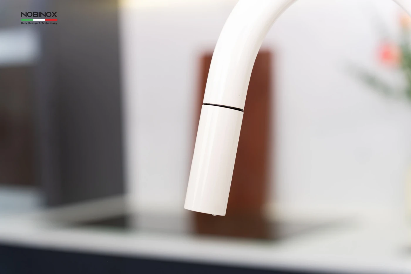 Trong bộ sưu tập AQUA - dòng sản phẩm hướng đến sự tinh tế và hài hòa trong không gian bếp. Vòi rửa bát dây rút NOBINOX AQUA NX661B gây ấn tượng với sắc Milky White thanh lịch, nhẹ nhàng nhưng vẫn đủ nổi bật để tạo điểm nhấn sang trọng cho khu vực chậu rửa.