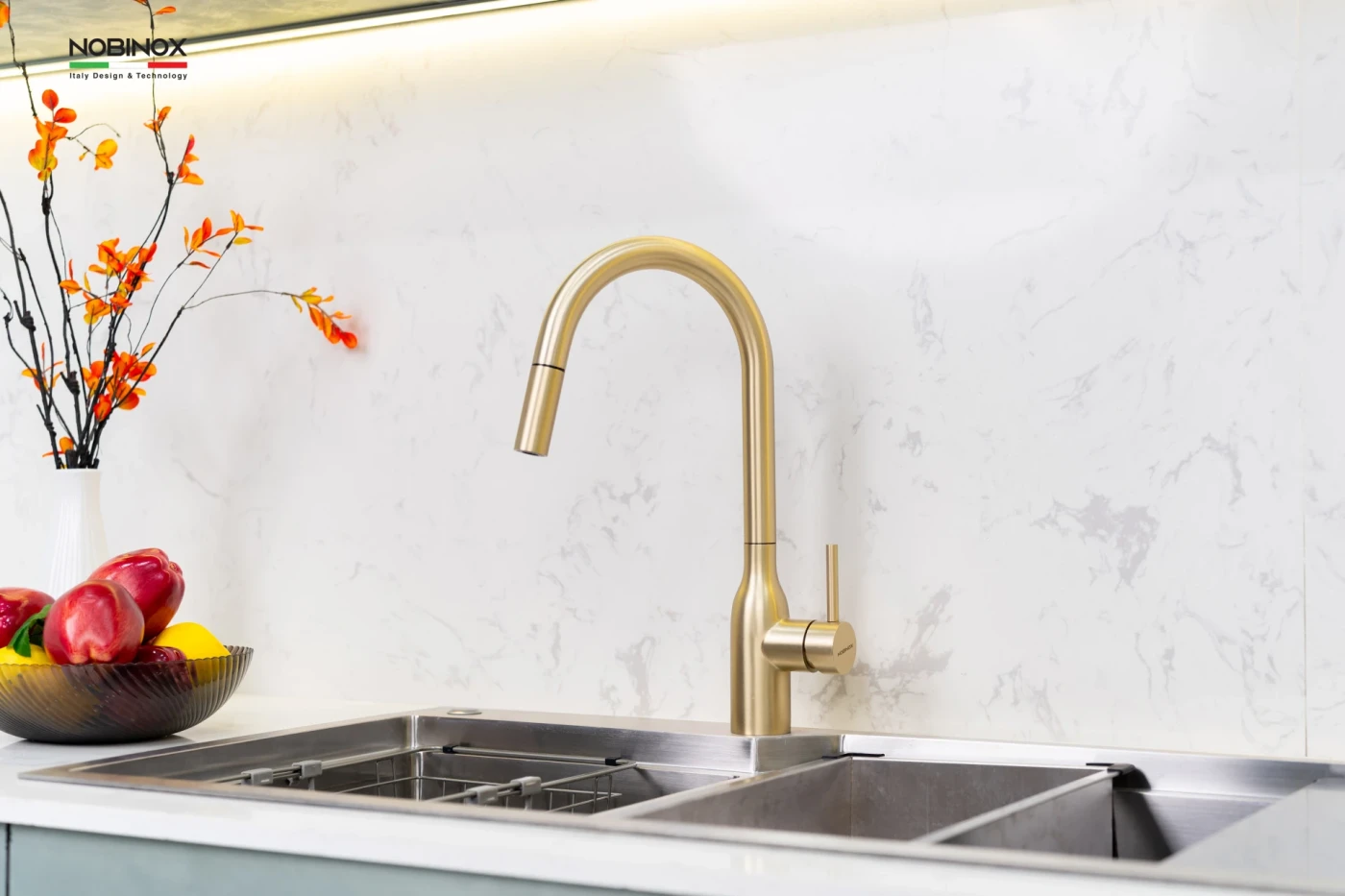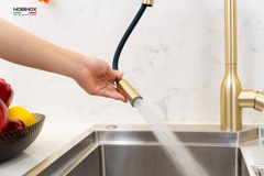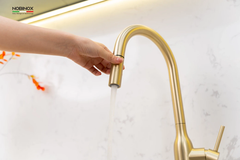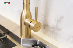 Vòi rửa bát NOBINOX AQUA NX663V màu Brushed Gold tạo điểm nhấn ấm áp, giúp không gian bếp trở nên nổi bật và có chiều sâu hơn. Nằm trong dòng AQUA đa dạng màu sắc, đây là lựa chọn phù hợp cho những ai muốn cá nhân hóa không gian bếp.