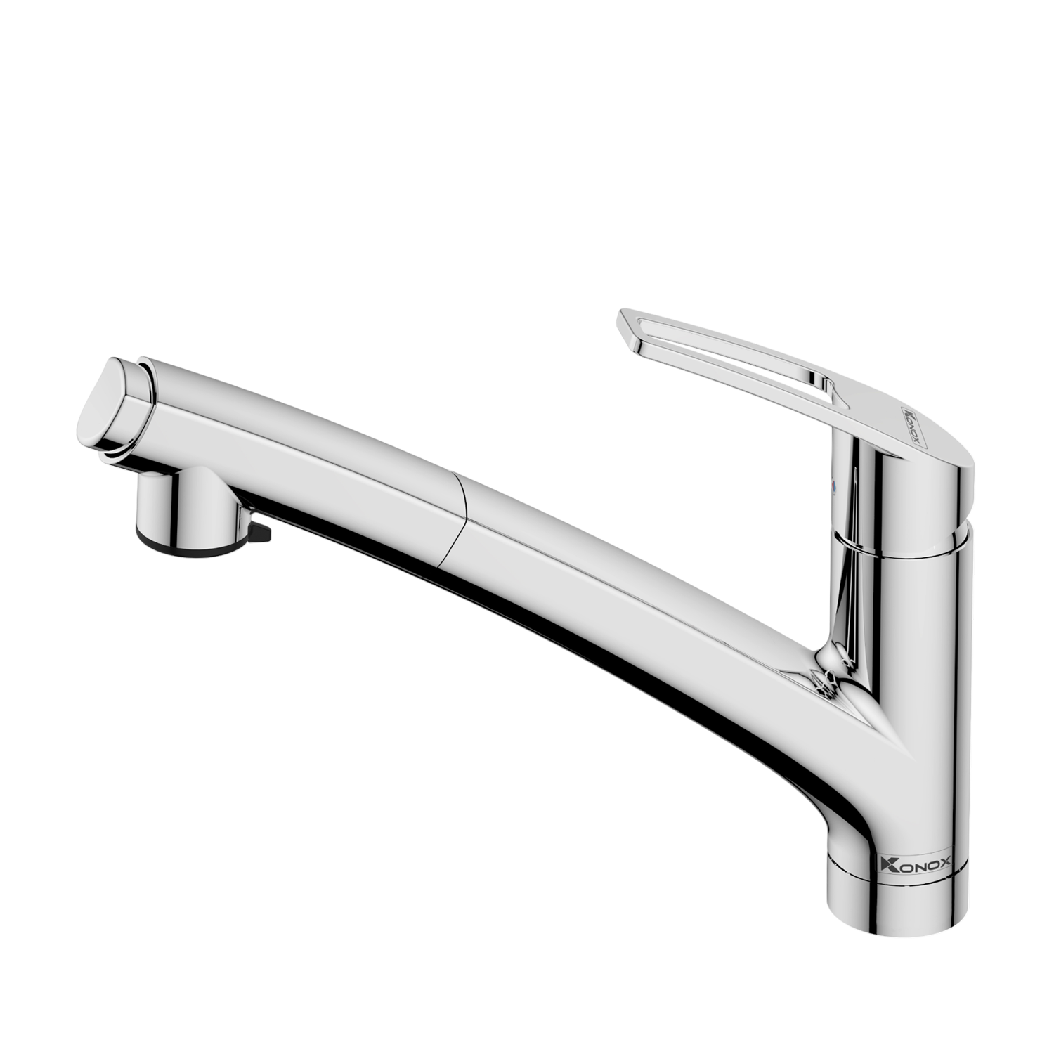 Vòi rửa bát Konox Kira Chrome là dòng vòi rửa bát mang phong cách Nhật Bản: gọn gàng và sử dụng mượt mà trong từng thao tác. Thiết kế dáng thấp bo cong mềm kết hợp lớp mạ Chrome sáng bóng tạo cảm giác thanh thoát nhưng vẫn chắc chắn. Kira được trang bị đầu vòi kéo rút linh hoạt, cho phép người dùng dễ dàng vệ sinh từng góc chậu, rửa thực phẩm nhanh chóng mà không bắn nước ra ngoài
